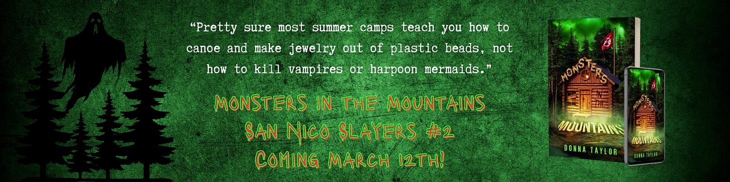 Monsters in the Mountains, book 2 in the San Nico Slayers series, comes out in only 10 days! Holy crap, that crept up on me! Now is the perfect time to start the series if you haven’t already, and then dive right in to book two!